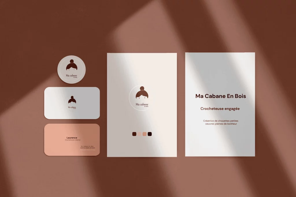 Le logo que l’on a créé pour ma cabane en crochet s’inspire avant tout de son travail. Nous avons isolé certains des modèles de crochets qu’elle a mis au point et décliné un environnement coloré directement connecté à ces modèles. L’idée était de donner un visage à la marque, un visage et une ambiance qui, déjà, se diffusaient à travers sa communauté.